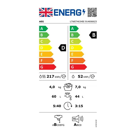 AEG L7WE74634BI Built In Washer Dryer. 7000s. 7kg wash load, 4kg dry load, 1600rpm spin speed