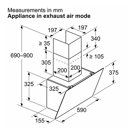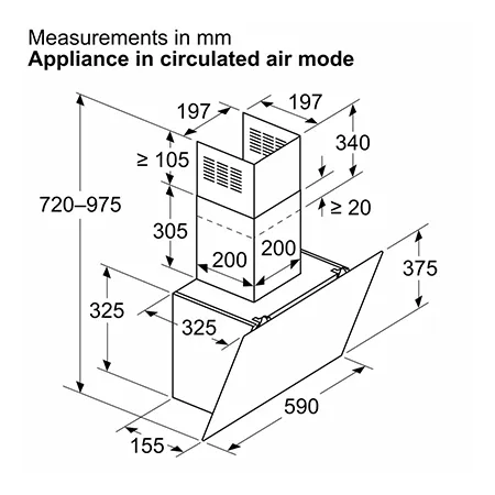| Minimum distance above an electric hob | 650 mm |